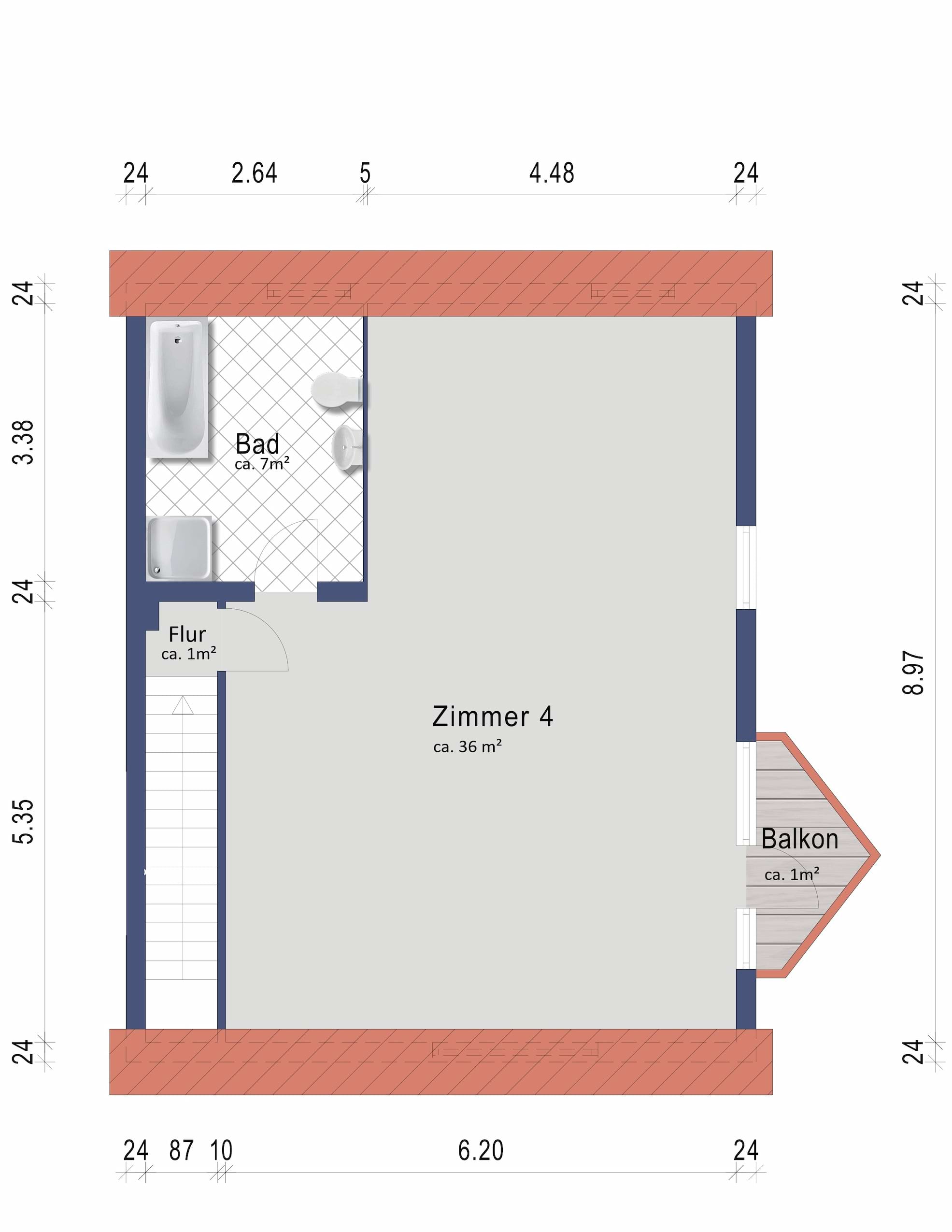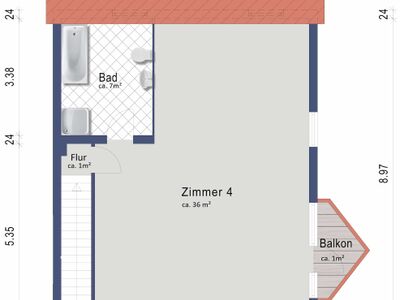 Das Dachgeschoss bietet noch ein weiteres großes Zimmer, welches ebenso als Schlafzimmer, Kinderzimmer oder als Hobbyraum genutzt werden kann.